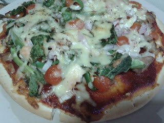 It would have been better if I have sprinkled more cheese. Emily loves it and she said is better than pizza hut because according to her, pizza hut's a tad too dry and this one is juicier. But I think other wise :)